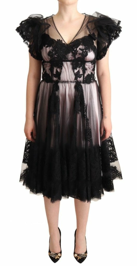Gorgeous brand new with tags, 100% Authentic Dolce & Gabbana black and pink nylon floral lace midi dress.