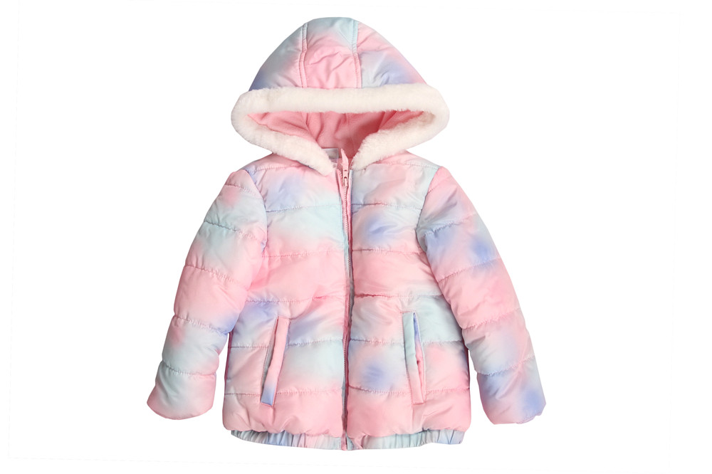 Girls Cozy Lined Puffer Jacket comes in one color, made of 100% Polyester shell and 100% Polyester Polar fleece, located in China, Ready to GO!!