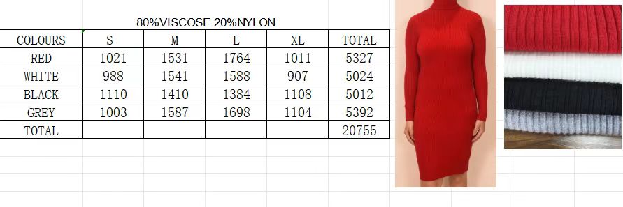 Ladies Sweater Dress comes in 4 colors, made of 80% Viscose / 20% Nylon, located in China, Ready to GO!!